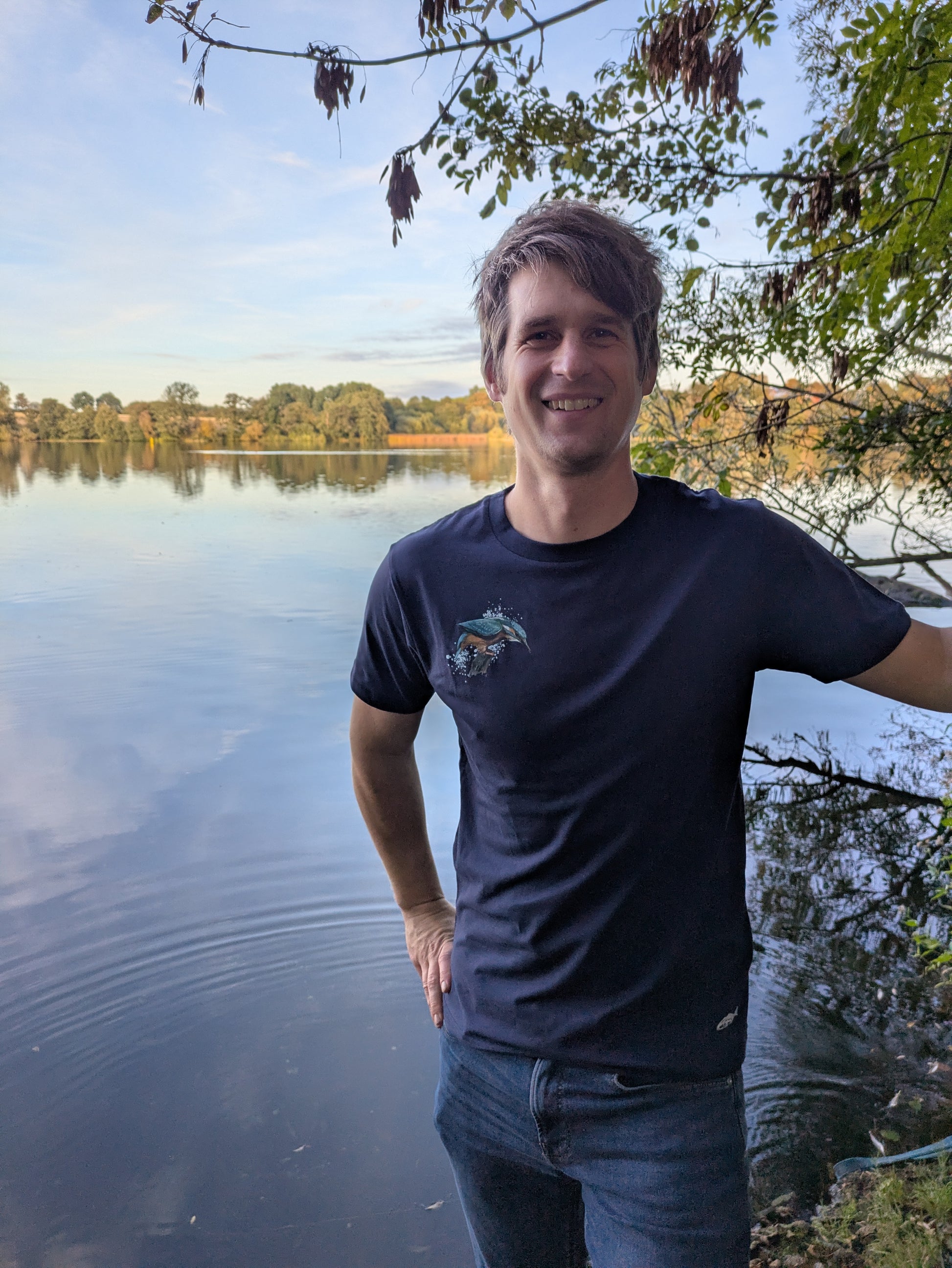 Herren T-Shirt aus nachhaltiger Biobaumwolle in der Farbe navy. Das Motiv zeigt einen Eisvogel. Sein schillerndes Gefieder ist unverwechselbar. Der Eisvogel lebt an fischreichen und sauberen Bächen und Flüssen, manchmal auch an Seen. Seine Bruthöhle baut er sich am Ufer in Steilhänge.